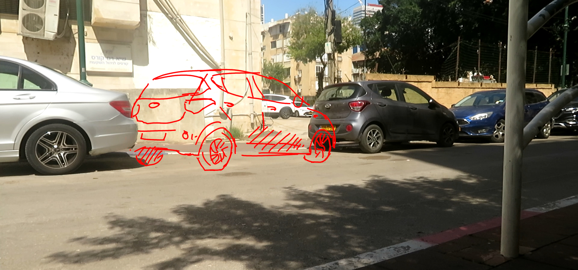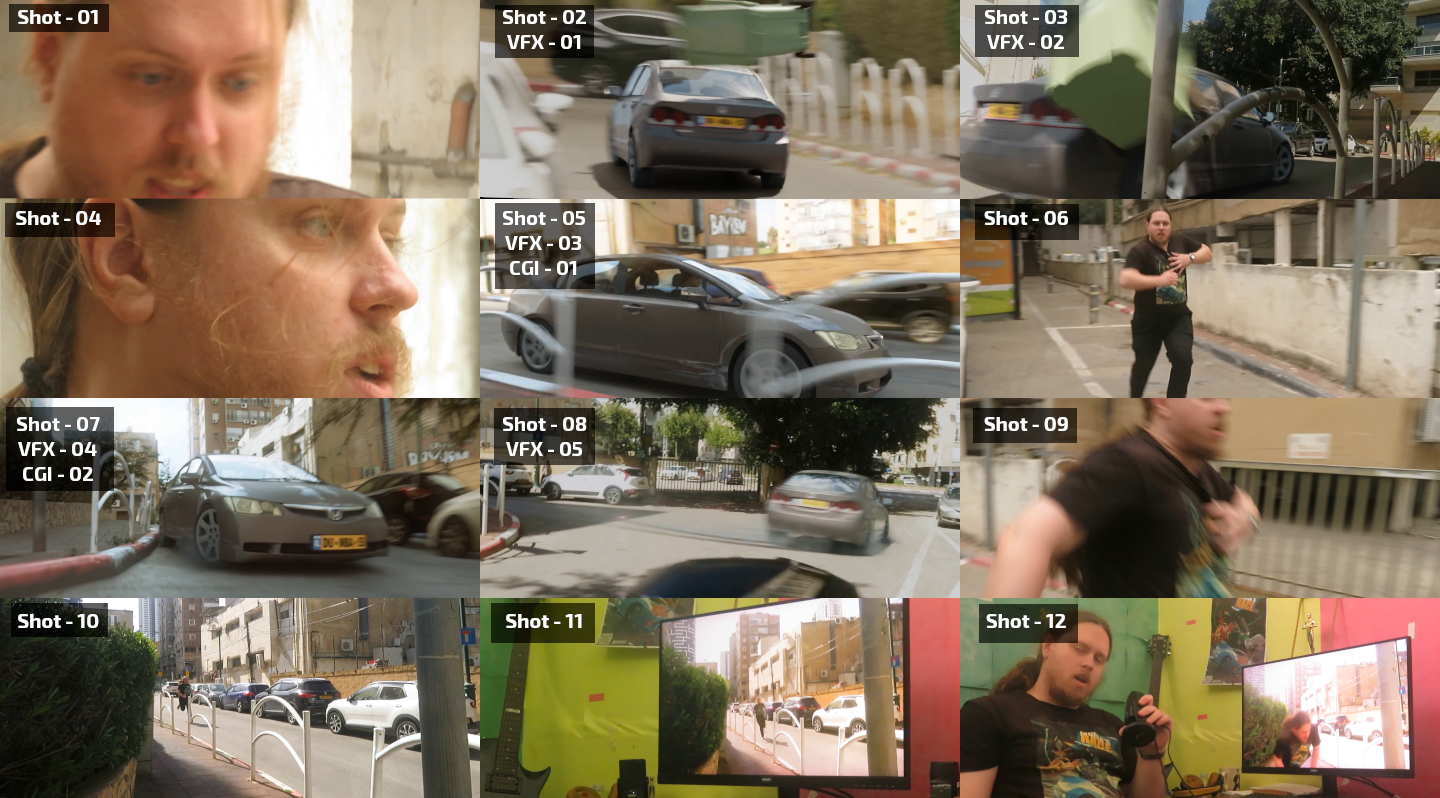 VFX shot 2 was almost simple, minus one rather annoying complication. The hole in between cars, through which the hero car goes, was always occupied by a member of subspecies of "parked cars". I had to basically get lucky and take this shot in a not too dissimilar lighting condition, when a car is not parked at that specific spot. I think I was going home from work and noticed that there was no car parked at that spot. So I grabbed a camera and quickly shot this plate.